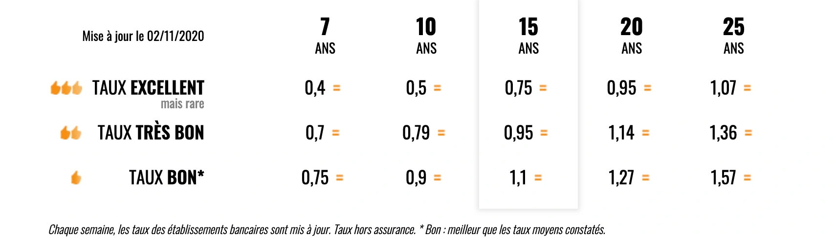 À l’heure actuelle, le “baromètre” mis en place par Meilleurtaux.com présente les différents taux que vous pouvez obtenir aujourd’hui pour un prêt-relais :
